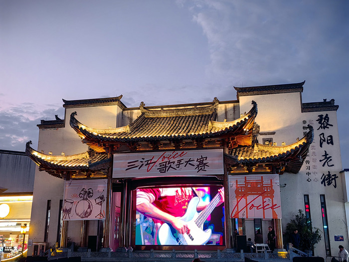 老街的最新活动让暮色更添热闹,婉转的歌声与欢笑声回荡在巷陌间,现代活力与古徽州的静谧古韵撞个满怀。而贾府飞翘的屋檐下,红灯笼在暮色中次第亮起,暖黄光晕晕染着斑驳的白墙黛瓦,将徽派建筑的精致风骨勾勒得愈发清晰