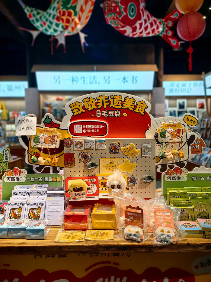 暮色浸染的黎阳老街,是徽州文化传承与新生的绝佳舞台。黄山毛豆腐不再只是街巷里的诱人风味,化身憨态可掬的毛绒玩具,让徽州饮食文化以新潮文创的模样,圈粉无数年轻游人;临街茶铺里,黄山毛峰、太平猴魁等名茶整齐陈列,氤氲茶香里,藏着徽商“以茶兴业”的百年传奇。