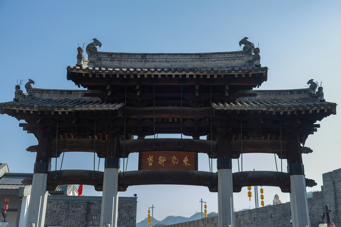 飞檐翘角,雕刻精美。牌坊上高悬匾额,上书東南邹鲁四个烫金大字,尽显庄重与威严。蓝天白云之下,牌坊气势恢宏,散发着浓厚的历史文化气息。