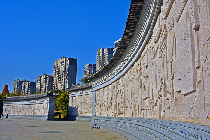 新安江畔浮雕照壁,以石为纸、以凿为笔,铺展徽文化千年长卷。从程朱理学的思想辉光,到徽商贾道的经世智慧,从徽派建筑的粉墙黛瓦,到四大徽班的戏曲雅音,一雕一塑间,尽是古徽州的人文风骨。在新安江水的悠悠映衬与现代建筑的交辉中,徽韵如江波永续,在当代黄山的土地上,续写着文化的绵长新篇。