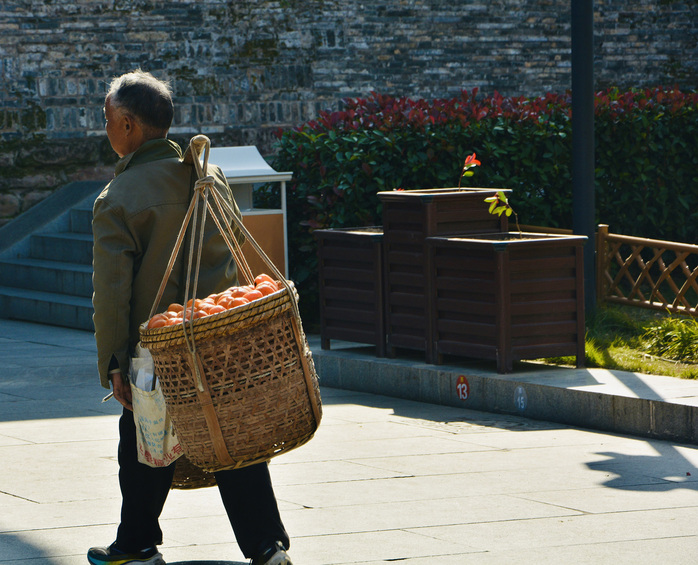 在徽州古城的青砖墙下,挑担老者的箩筐里,红柿如盏盏灯笼,映照着千年徽州的烟火气。这方土地曾是徽商故里、文化渊薮,如今,古老的城垣仍在,传统的营生也未远去。一担红柿,是乡土的馈赠,更是徽州人在时光里续写的生活诗行,让历史的厚重与市井的温情在此交融,凝成徽城独有的岁月印记。